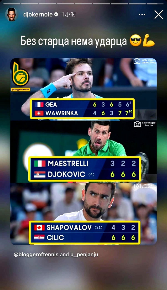 由瓦林卡、西里奇和德约组成的澳网不老男神团最终还是解体了,看到最后仅剩的德约接下来也将面对穆塞蒂的强有力挑战时,更让人觉得老将们在网坛打拼有多么不容易了。